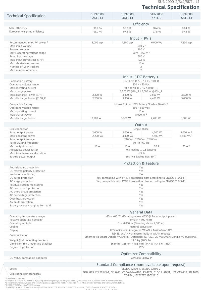 | 1 | Datasheet Inverter Huawei 5kW SUN2000-5KTL-L1 | |